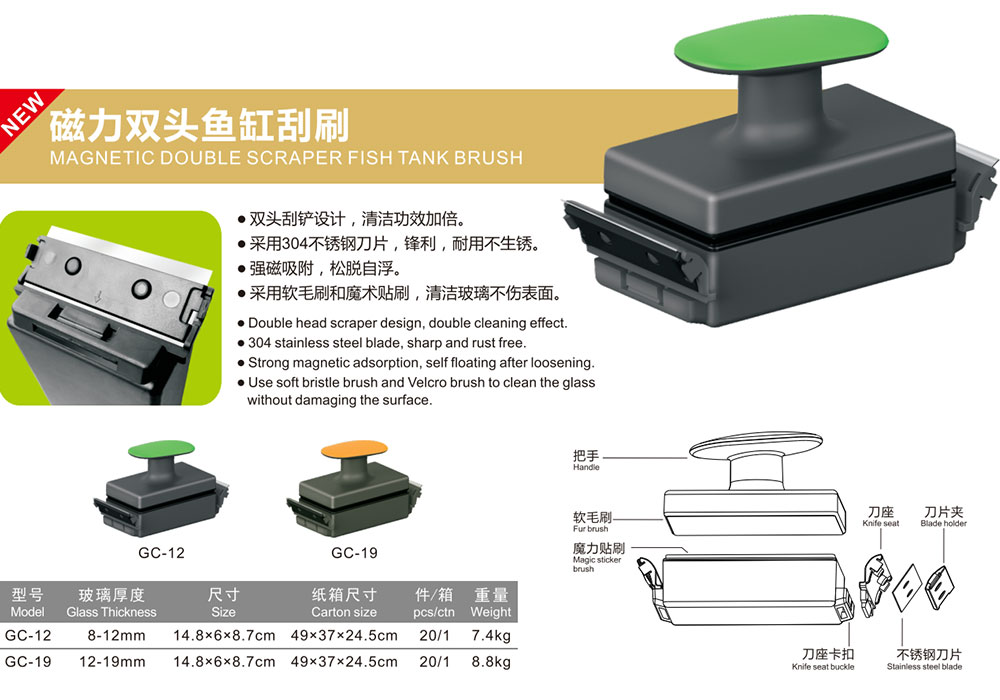 MAGNETIC DOUBLE SCRAPER FISH TANK BRUSH