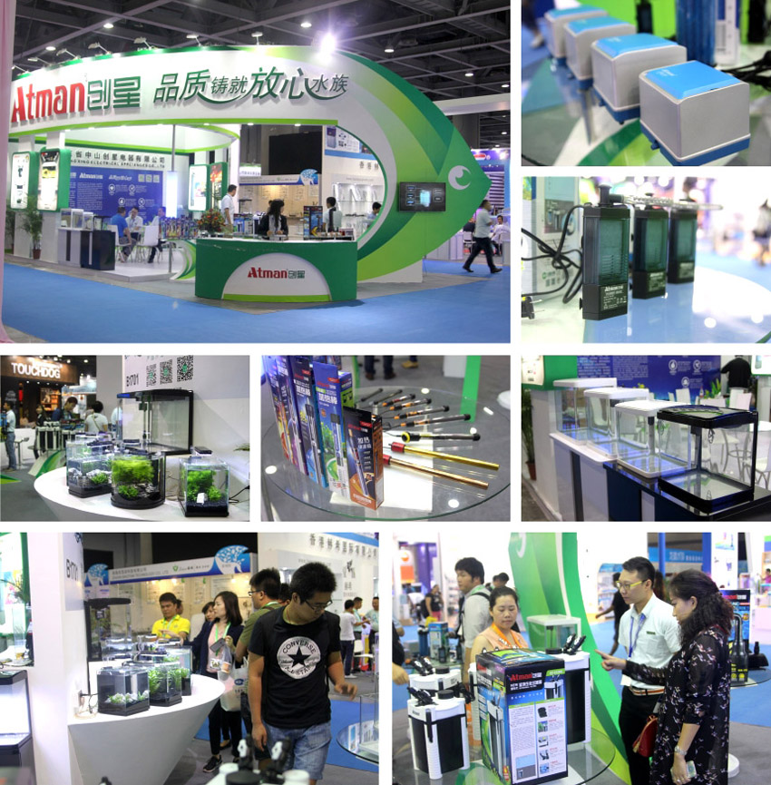 我们把本次参展看作是2015年明博官网平台研发的阅兵场,展会上秀出了以“微水族”为概念的新一代配套式鱼缸,新研发的节能水泵,气泵(气立方),新型加热棒(猛将,金刚),新升级的AT缸外生化过滤桶系列等等。
